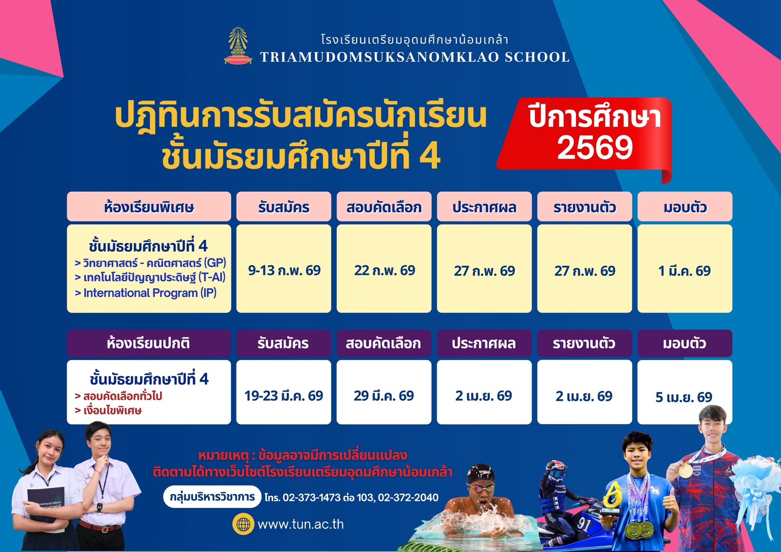 ประกาศรับนักเรียน ชั้น ม.1 และ ม.4 ประเภทห้องเรียนปกติ 20 ก.พ. 69