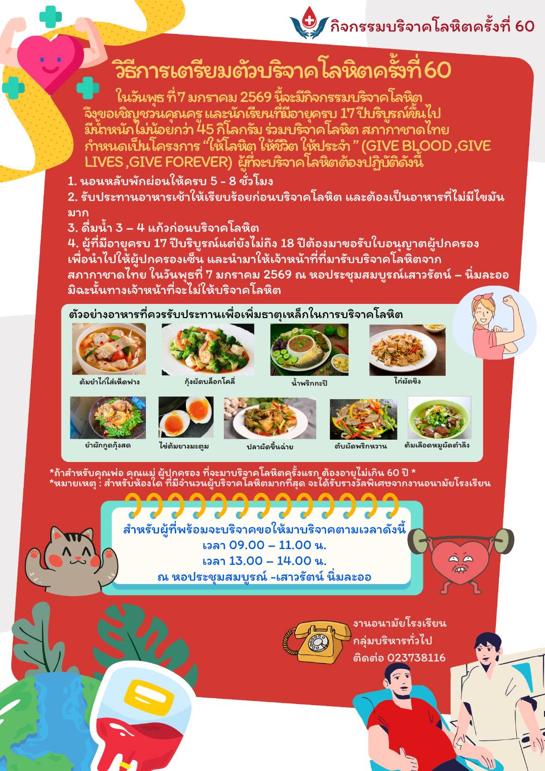 กิจกรรมบริจาคโลหิตครั้งที่ 60 วันที่ 7 ม.ค. 69 และวิธีการเตรียมตัวบริจาคโลหิต