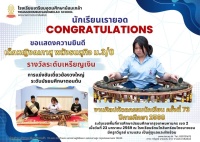 นักเรียนเรายอด : ได้รับรางวัลระดับเหรียญเงิน เครื่องสายผสมขิม ระดับมัธยมศึกษา