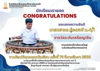 นักเรียนเรายอด : รางวัลระดับเหรียญเงิน การแข่งขันเดี่ยวฆ้องวงใหญ่ ระดับมัธยมศึกษาตอนปลาย