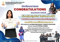นักเรียนเรายอด :ได้รับรางวัลระดับเหรียญเงิน การแข่งขันวงดนตรีสตริง ระดับมัธยมศึกษาตอนต้น