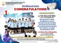 นักเรียนเรายอด : รางวัลรองชนะเลิศ อันดัน 1 ระดับเหรียญทอง การประกวดดนตรี ประเภทวงดุริยางค์เครื่องลม (Wind Ensembles) ระดับมัธยมศึกษ