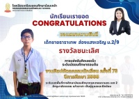 นักเรียนเรายอด : ได้รับรางวัลชนะเลิศ การแข่งขันประกวดโครงงานคุณธรรม ระดับมัธยมศึกษาตอนต้น