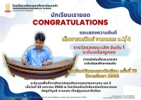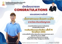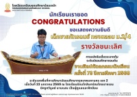 นักเรียนเรายอด :ได้รับรางวัลระดับเหรียญทอง การแข่งขันขับร้องเพลงพระราชนิพนธ์ชาย ระดับมัธยมศึกษาตอนต้น