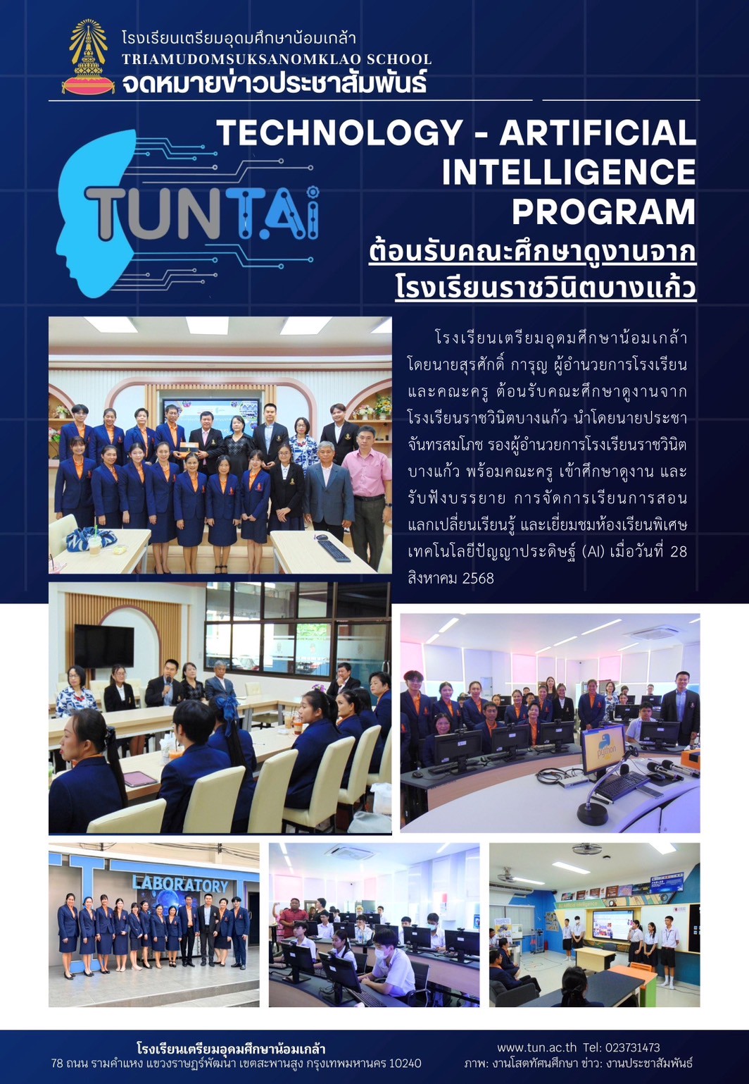 TECHNOLOGY - ARTIFICIAL INTELLIGENCE PROGRAM ต้อนรับคณะศึกษาดูงานจาก โรงเรียนราชวินิตบางแก้ว