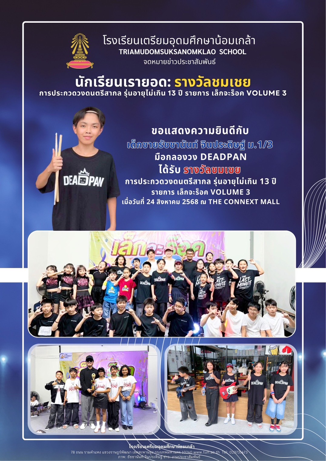 นักเรียนเรายอด: รางวัลชมเชย การประกวดวงดนตรีสากล รุ่นอายุไม่เกิน 13 ปี รายการ เล็กจะร็อค Volume 3