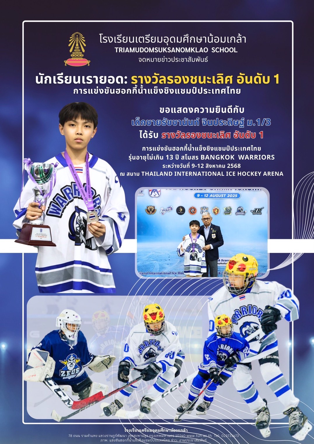 นักเรียนเรายอด: รางวัลรองชนะเลิศ อันดับ 1 การแข่งขันฮอกกี้น้ำแข็งชิงแชมป์ประเทศไทย