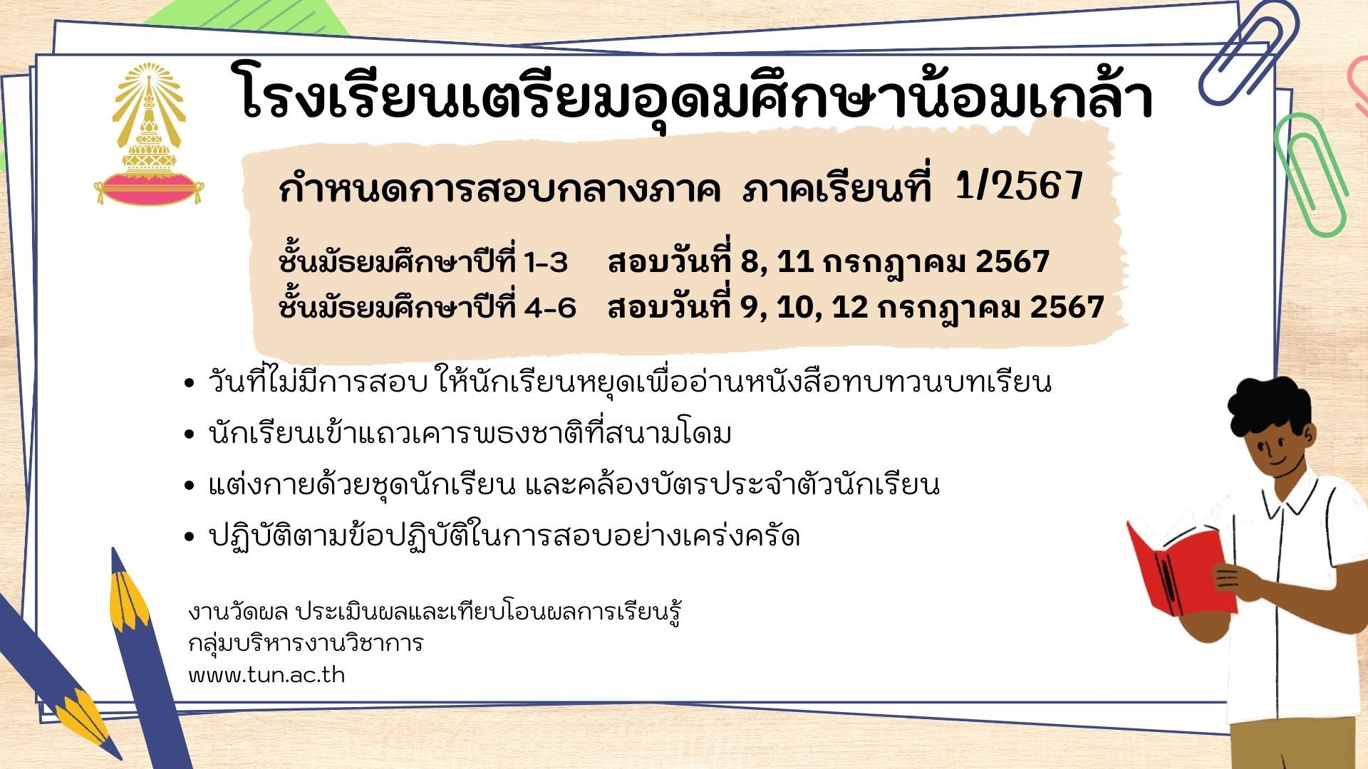ตารางสอบและห้องสอบกลางภาค ภาคเรียนที่ 1 ปีการศึกษา 2567