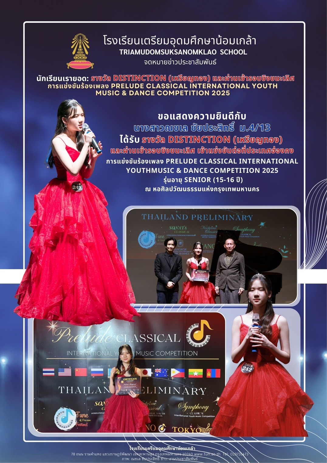 นักเรียนเรายอด: รางวัล Distinction (เหรียญทอง) และผ่านเข้ารอบชิงชนะเลิศ การแข่งขันร้องเพลง Prelude Classical International Youth Music & Dance Competition 2025