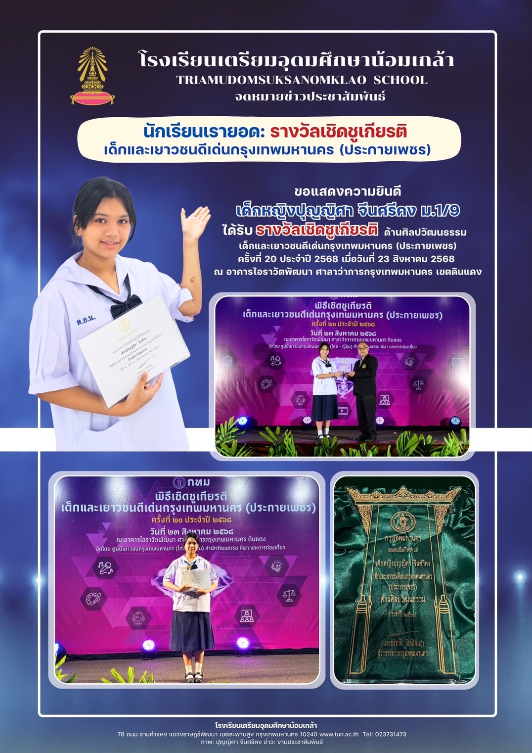 นักเรียนเรายอด: รางวัลเชิดชูเกียรติ เด็กและเยาวชนดีเด่นกรุงเทพมหานคร (ประกายเพชร)