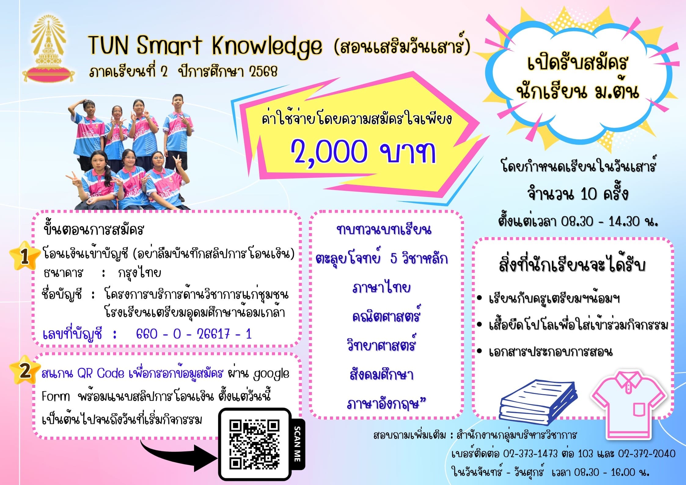 รับสมัครนักเรียน ม.ต้น เข้าร่วมกิจกรรม TUN Smart Knowledge (สอนเสริมวันเสาร์)