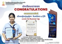 นักเรียนเรายอด : รางวัล 1st Runner Up การแข่งขัน Grade 5 Category,Violin of the Nocturne Classical International Youth Music Competition 2025 Final Round Hong Kong CulturalCenter 25-26 Dec, 2025