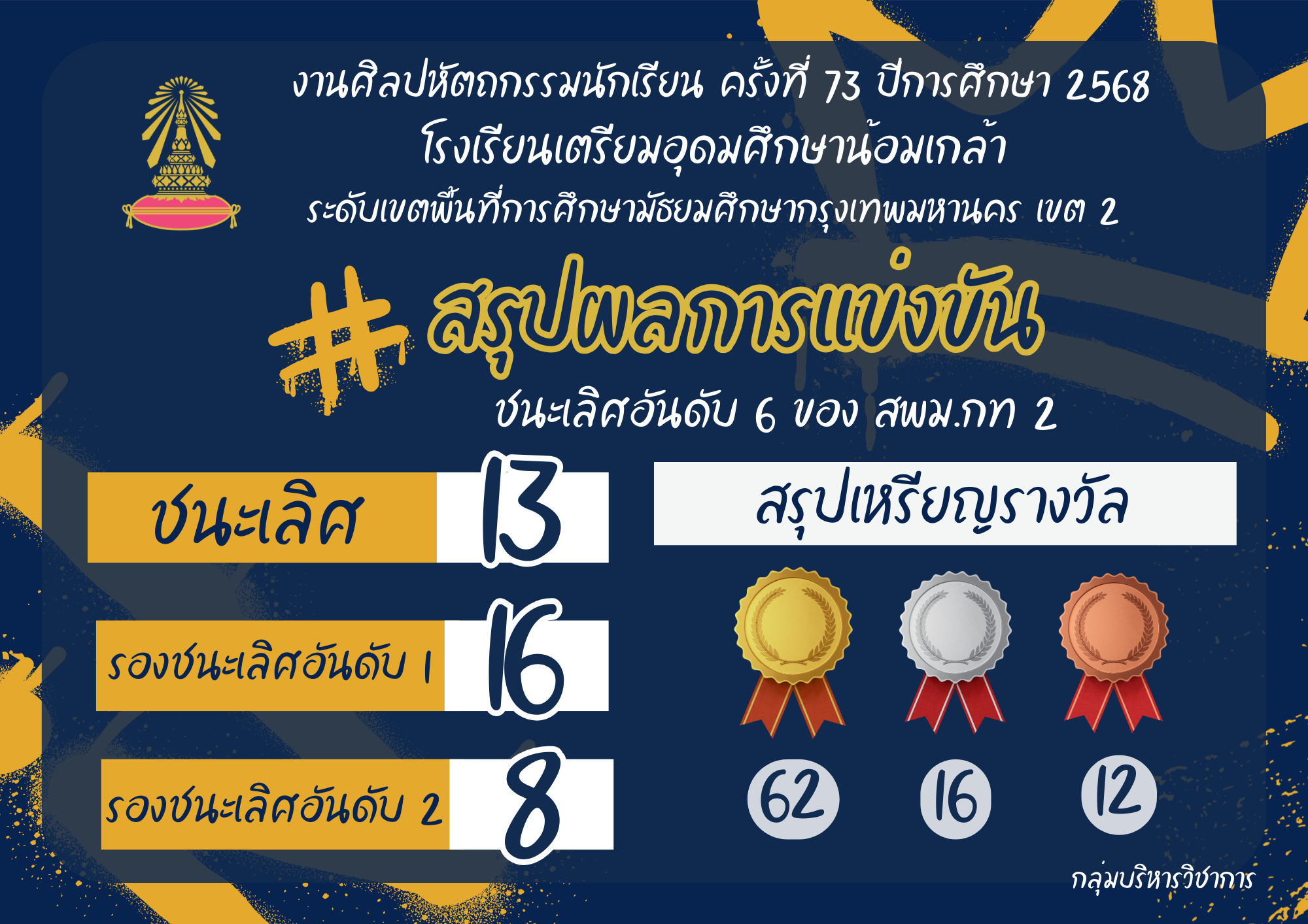 ชนะเลิศอันดับ 6 สพม.กท 2 การแข่งขันศิลปหัตถกรรมนักเรียน ครั้งที่ 73